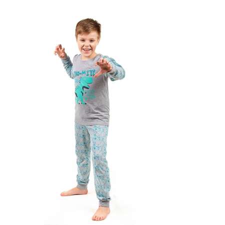 Пижама для мальчика N.O.A. серого цвета - декорированы цветным принтом с динозаврами, изготовлена из качественного кулирного полотна, состоящего на 100% из хлопка мягкая на ощупь, приятная для тела, хорошо пропускает воздух и создает комфортный микроклимат для кожи в любое время года.