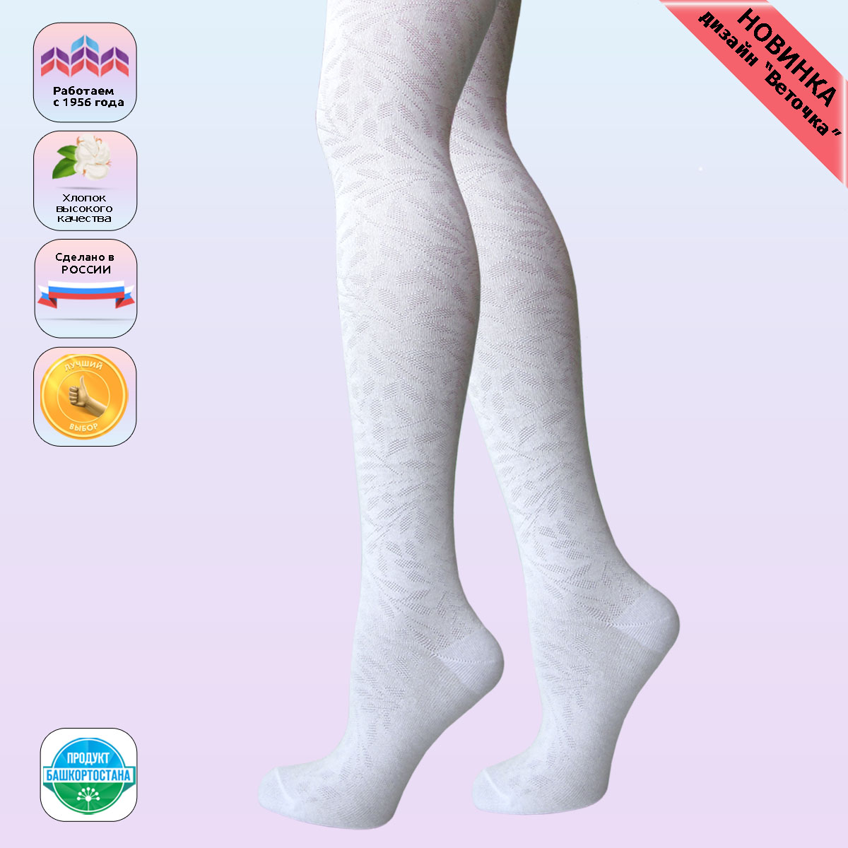 Мягкие, удобные, нарядные, ажурные колготки изготовлены из натурального хлопка, не вызывают раздражений и аллергических реакций. Благодаря добавлению в пряжу эластана колготки хорошо тянутся и при этом не спадают. Хорошая облегаемость по ноге, отличная посадка не перетягивает тело ребенка. Не линяют и не садятся после стирок. Натуральные волокна хлопка сохраняют тепло, впитывают влагу, отличаются прочностью и гигиеничностью, что очень важно при выборе детской одежды. Если вам нужны колготки на торжество, утренник в детский сад, то наши ажурные колготки идеально подойдут. Они очень красивые и смотрятся на детских ножках просто восхитительно! Ишимбайская чулочная фабрика изготавливает колготки по европейским стандартам на современном вязальном оборудовании Lonati. Перед ношением рекомендована предварительная ручная стирка при температуре до 40 градусов. ВАЖНО: стирать отдельно от темных вещей.