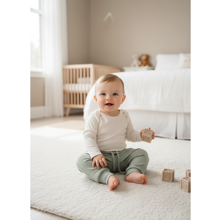 Свойства ткани: мягкий, приятный к телу, эластичный, гипоаллергенный трикотаж, комфортный даже для чувствительной кожи малыша и хорошо пропускающий воздух. Материал тянется и не стесняет движений, что важно для активных детей и ясельного возраста.