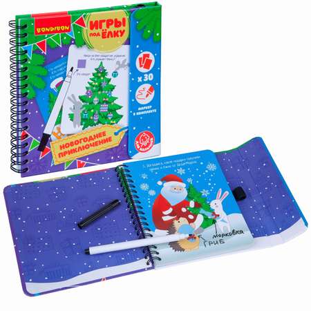 Компактная развивающая игра под ёлку Новогоднее приключение Bondibon. Выбираете подарок, который понравится ребенку и поможет подготовить его к школе? Компактная развивающая игра НОВОГОДНЕЕ ПРИКЛЮЧЕНИЕ серии Игры под елку от Bondibon – это набор карточек с забавными сюжетами и интересными заданиями в удобном формате книжки на пружинке.
