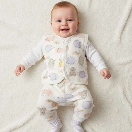Комплект для новорожденных: Жилет на кнопках и брюки (Турция) Жилет на кнопках + штанишки с манжетами стильный нарядный комплект — идеальное сочетание практичности и эстетики. Выполненный из плотного, но невероятно мягкого турецкого футера, одежда для новорожденных подарит вашему малышу уют как во время активных игр, так и во время отдыха. Натуральный состав Комплекта для новорожденных без синтетики. Ткань одежды для малышей гипоаллергенна, позволяет коже дышать и не вызывает раздражения. Материал костюма для мальчика без начеса и флиса, но при этом достаточно плотный, чтобы сохранять тепло. Костюм для девочки идеально для любого сезона — как самостоятельный наряд или как слой под верхнюю одежду.Жилетка на кнопках позволяет быстро и легко переодеть ребенка, не доставляя ему дискомфорта. Брюки с мягкими манжетами надежно фиксируются, не пережимая нежную кожу. Костюм детский для новорождённых выполнен в стиле унисекс — он одинаково эффектно смотрится и на мальчиках, и на девочках. Лаконичный дизайн жилетки для малыша делает его подходящим как для домашнего использования, так и для торжественных выходов или фотосессий. Благодаря высокому качеству трикотажа, комплект сохраняет свою мягкость и форму после множества стирок. Трикотажный комплект для детей ,Костюм произведен в Турции, что гарантирует высокое качество швов и износостойкость ткани.