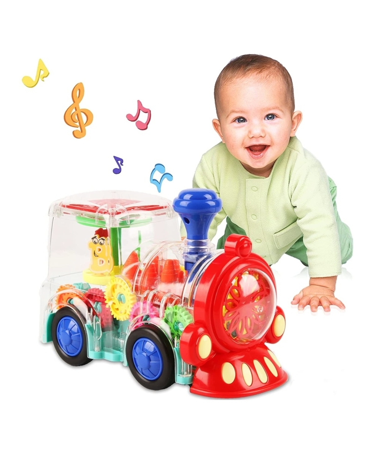 Паровоз прозрачный, светящийся с музыкой и движущимися внутри шестеренками станет для ребенка любимой игрушкой.У этой игрушки есть масса преимуществ: Улучшенный пластик. Ничего не сломается, не погнется. Прозрачный кузов. Ребенок видит устройство машинки, наблюдает, как двигаются шестеренки, действуют все механизмы. Очень познавательно для ребёнка. Разноцветные огоньки. Машинка светится и этот факт не может не удивлять и радовать одновременно! Музыкальное сопровождение. Весёлые мелодии, сопровождаемые огоньками. Что может быть интереснее? Можно катать машинку только со включенными огоньками либо со светом и с музыкой одновременно. При возникновении препятствий на пути машинка автоматически начинает двигаться в обратном направлении. Не нужно каждый раз подходить к игрушке и разворачивать ее! Отлично подойдёт в качестве подарка!Игрушка максимально безопасна. Её конструкция с обтекаемой формой и без углов. Отсутствуют острые и мелкие детали, токсичные компоненты в составе материалов. Машинка подходит даже для маленьких детей, которые сначала все пробуют на вкус. Машинка так же порадует ребёнка любой возрастной категории: как малыша, так и уже школьника. За счёт своей неординарности, она привлекает к себе внимание любого, и даже взрослого!Перед использованием не забудьте вставить батарейки и снять защитный колпачок привода снизу игрушки.