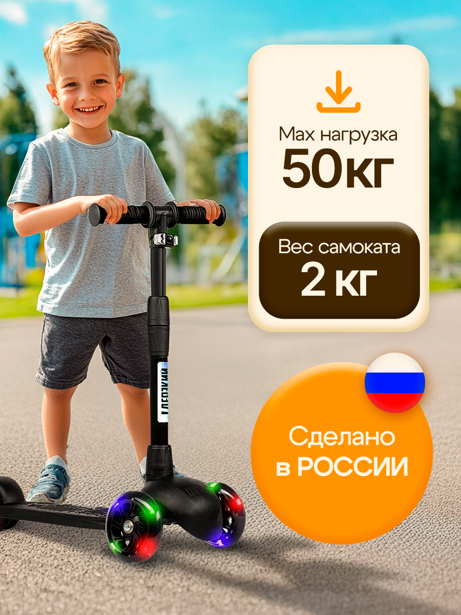 Самокат детский Дерзкий трехколесный 4-7 лет BOSS Стайл бесшумный светящиеся колеса черный