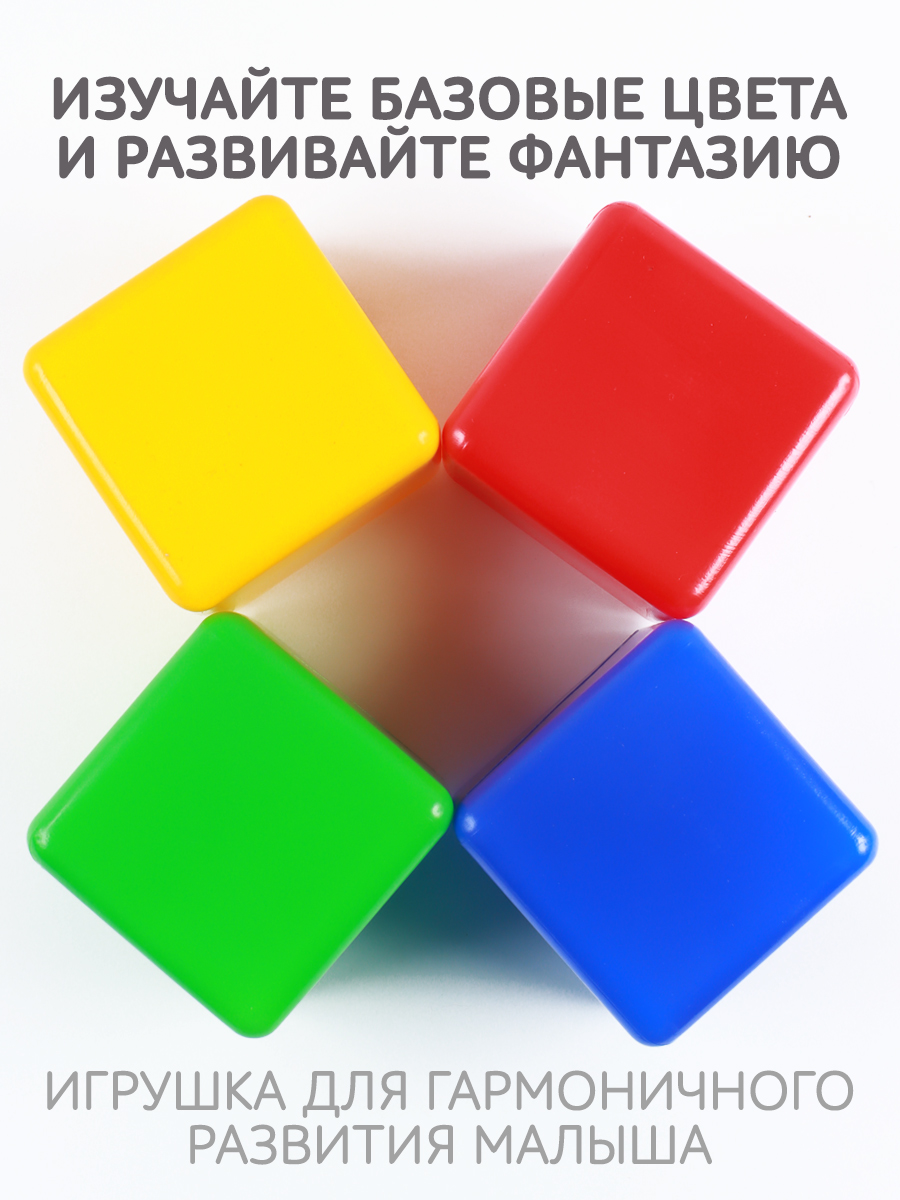 - С нашим набором кубиков можно изучать цвета, сортируя их по разным кучкам или подбирая к каждому кубику игрушки соответствующего цвета.