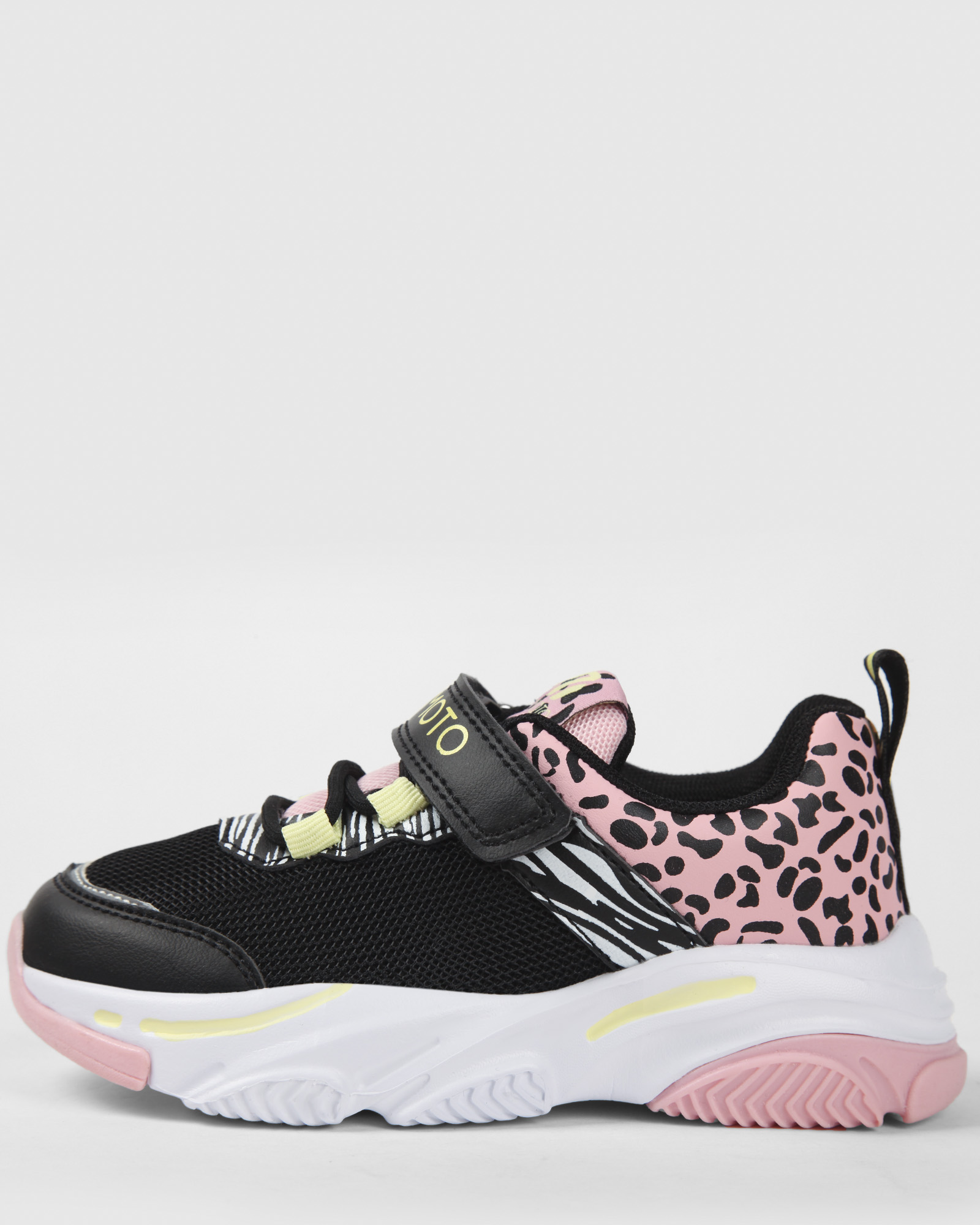 Чёрные кроссовки для девочки Jomoto с анималистичными вставками.