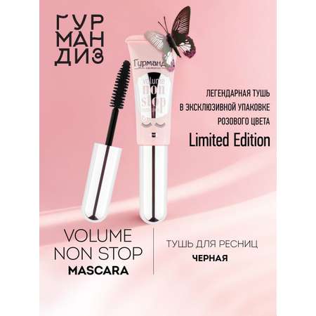Легендарная тушь ГУРМАНДИЗ Volume Non Stop черная в эксклюзивной упаковке розового цвета Limited Edition.Объемная тушь черного цвета для длинных пушистых ресниц имеет текстуру крема, не образует комочков - разделяет даже самые маленькие реснички - содержит уникальный полимерный комплекс и увлажняющие ингредиенты. Густой ворс позволяет отделять реснички друг от друга и тем самым увеличивать их объём. А благодаря разной длине ворсинок удается равномерно прокрашивать реснички разной длины и жесткости.