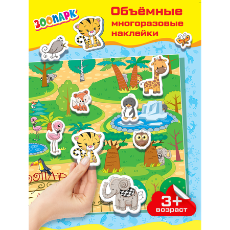 Наклеивая и отклеивая наклейки, ребёнок запомнит, как выглядят животные и птицы, живущие в Зоопарке, и как они называются.