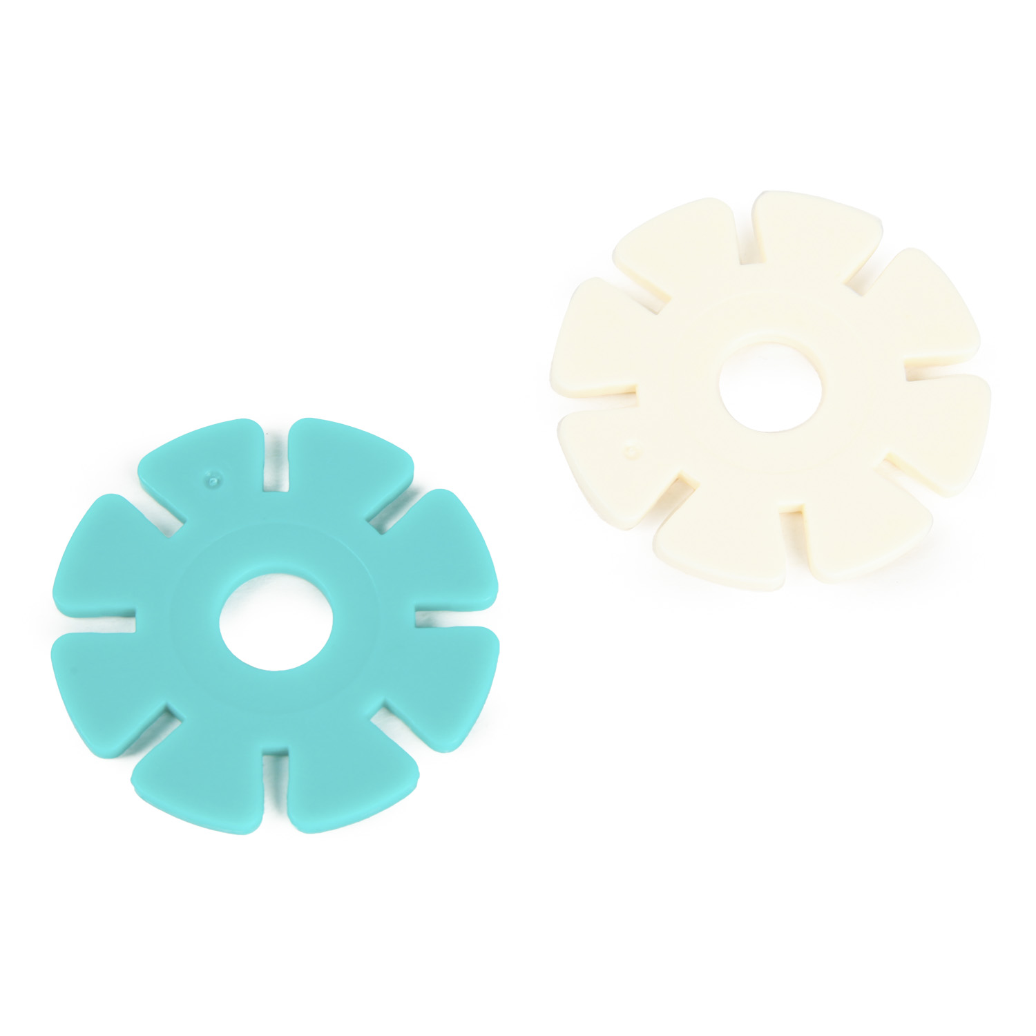 Набор состоит из 276 крупных разноцветных деталей, похожих на цветочки, размером 5 см в диаметре.