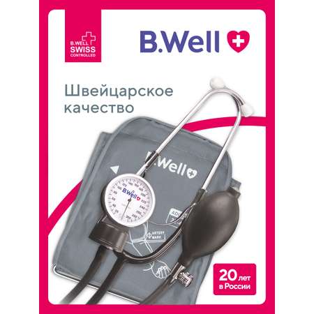 Тонометр B.Well MED-63 механический профессиональный, манжета с кольцом 22-42 см, встроенный стетоскоп.