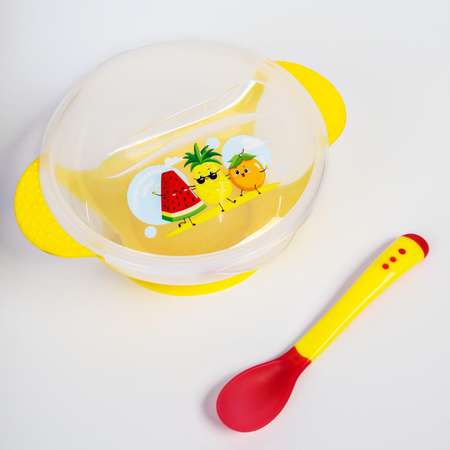 - Глубокая тарелочка объёмом 350 мл снабжена нескользящими ручками и присоской для надёжной фиксации на столе.