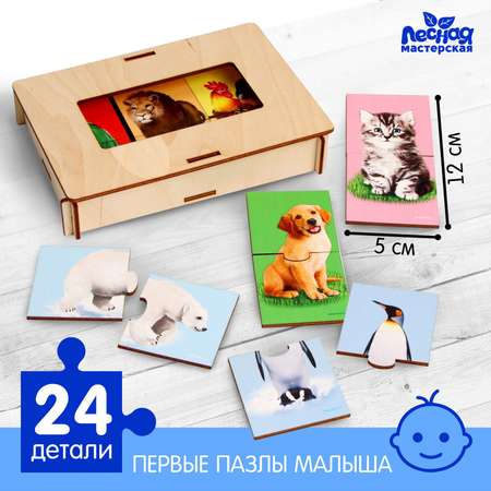Идеальный вариант первых пазлов из натурального дерева для самых любознательных Разложите перед ребёнком все картинки, дайте время их рассантиметровотреть. Перемешайте карточки, а затем попросите ребёнка соединить части пазлов. По ходу занятия спрашивайте, кто изображён на картинке, где обитает такое животное, видел ли он его. Во время игры развиваем мелкую моторику, кругозор и координацию движений.Цены в интернет-магазине могут отличаться от розничных магазинов.