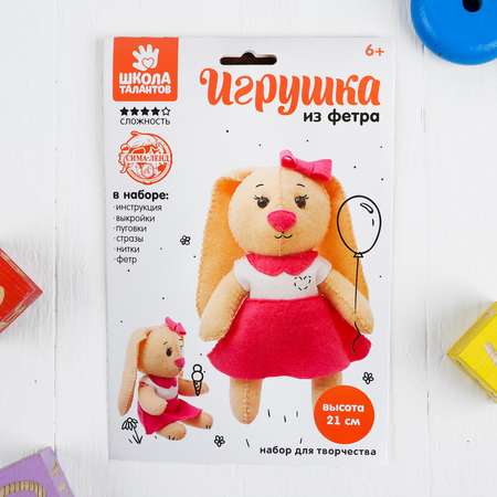 Набор для творчества Школа Талантов Игрушка из фетра Зайка в платье
