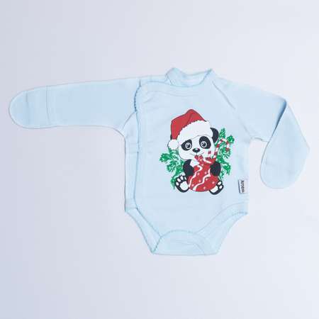 Распашонка-боди с ассиметричными полочками застежкой на кнопки, с рукавами реглан и царапками для малыша.
