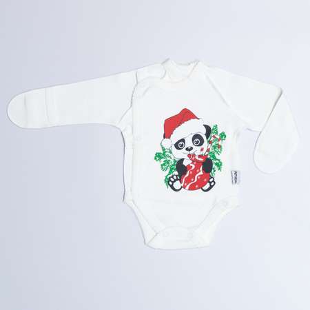 Распашонка-боди с ассиметричными полочками застежкой на кнопки, с рукавами реглан и царапками для малыша.