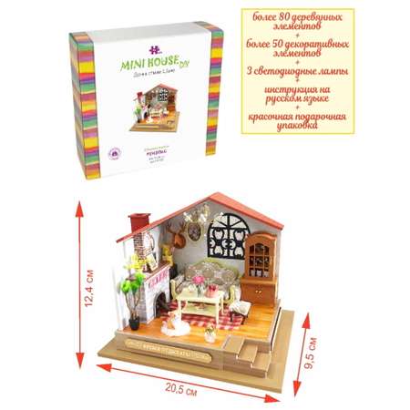 Румбокс Интерьерный конструктор. "Дом в стиле шале" M2202 от официального дистрибьютора Hobby Day. Товар полностью русифицирован. Интерьерный конструктор "Дом в стиле шале" M2202 - это готовый набор для творчества, внутри которого вы найдете все необходимое, чтобы воссоздать собственными руками кукольный интерьер в миниатюре. Все детали и элементы невероятно реалистичны, а собранный румбокс непременно вызывает восторг!Интерьерный конструктор - интересная идея для хобби и творчества внутри которого Вы найдете все необходимое, чтобы воссоздать собственными руками кукольный интерьер в миниатюре. Все детали выполнены из безопасных материалов и необыкновенно реалистичны.Только румбоксы от компании Hobby Day упакованы в яркую, подарочную упаковку с нанесением логотипа. Hobby Day - это русифицированный продукт, с гарантией и сертификатом качества. Приобретайте официальные товары, остерегайтесь подделок! *Страна производитель: Китай *Бренд: Hobby Day *Серия: DIY Mini House Дом *Возраст: 10 - 12 лет (от 10 лет с помощью взрослого, от 12 лет самостоятельная сборка) *Пол: Унисекс *Тип игрушки: творческая и развивающая *Упаковка: красочная картонная коробка *Состав: Детали изделия, русская инструкция, светодиоды (комплект для освещения) инструменты. *Материал: Дерево, Ткань, Пластик, Картон *Размер в собранном виде см: 20*16*15.8 *С подсветкой.
