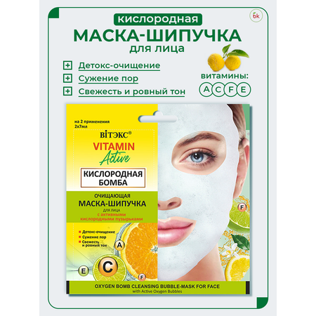 Маска для лица ВИТЭКС Vitamin Active Шипучка Очищающая Кислородная Бомба 2х7 мл саше