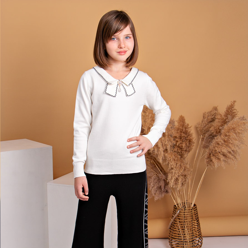 Джемпер школьный для девочки "Соль&Перец". Элегантный джемпер для девочки, декорированный съёмной брошью. Мягкий, вязаный трикотаж не сковывает движений, обладает хорошей воздухопроницаемостью и приятно облегает тело. Джемпер прекрасно сочетается как с юбками, так и с брюками. Подойдет для посещения школы, официального или праздничного мероприятия.