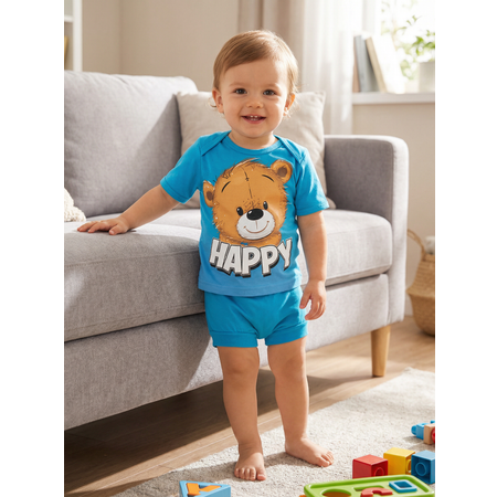 Ясельный комплект нижнего белья для малышей — удобный набор на каждый день, который включает футболку и трусы под памперс. Такой комплект белья для малыша подойдёт для дома и летних прогулок, обеспечивая комфорт и свободу движений.