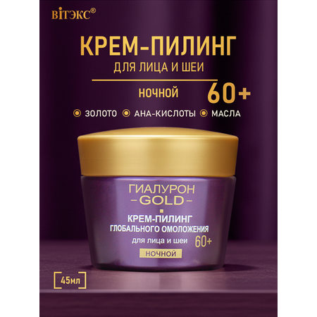 Крем для лица и шеи ВИТЭКС пилинг Гиалурон Gold Глобального омоложения 60+ ночной 45 мл