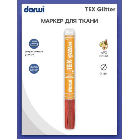Маркер Darwi для ткани TEX Glitter DA0140013 2 мм с блестками 490 алый