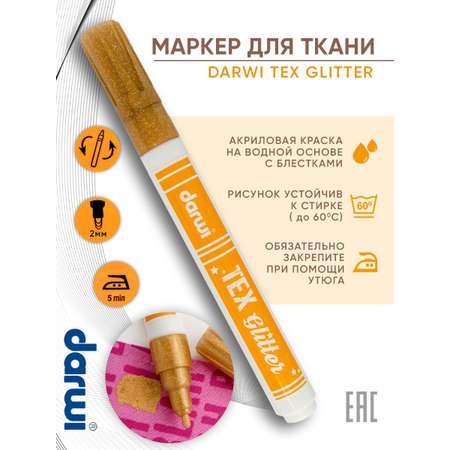Маркер Darwi для ткани TEX Glitter DA0140013 2 мм с блестками 050 золотой