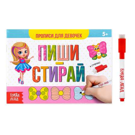 Многоразовая книжка с маркером Буква-ленд Напиши и сотри. Прописи для девочек»