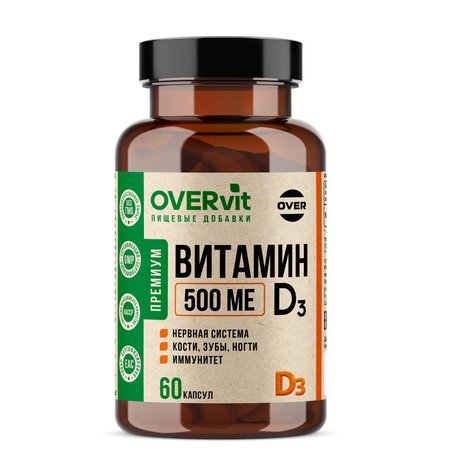 Витамин D3 OVER БАД для поддержания иммунитета и здоровья 60 капсул