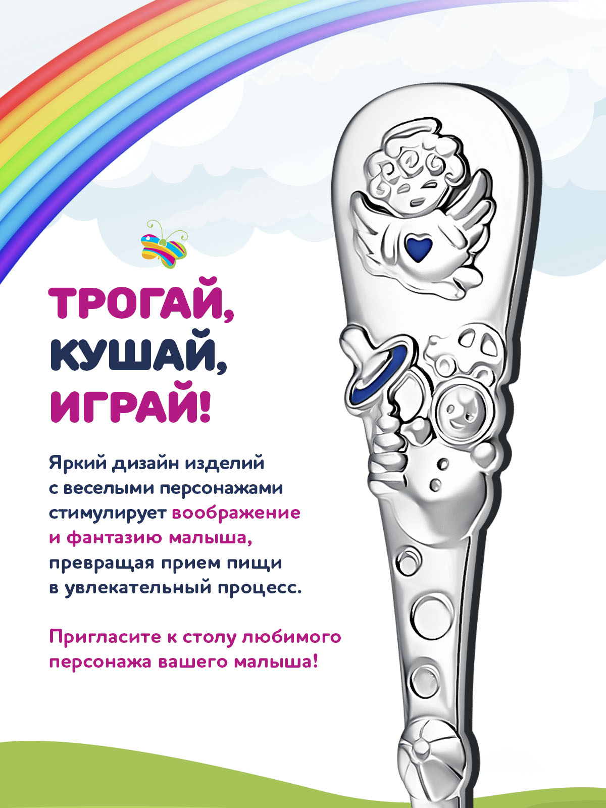 1. Ложка детская пос. "Ангел" с голубой эмалью арт. 001ЛДНН01Г - 1шт. (средний вес 1 х 30 гр. = 30 гр.) Длина: 120 мм. Ширина: 30 мм.
