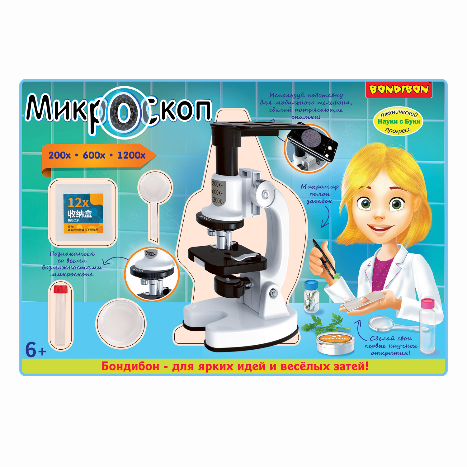 Набор для опытов Микроскоп детский серии Науки с Буки от Bondibon – это современная оптическая система с трехуровневым увеличением, которая позволит ребенку провести научные эксперименты с готовыми образцами и собственными препаратами. Такие игрушки развлекают и развивают у ребенка интерес к науке и стимулируют любознательность в раннем возрасте. Микраскоп 3д - это необычный и интересный подарок мальчику или девочке на день рождения, новый год, 23 февраля или любой праздник. А также оригинальный сюрприз на выпускной в детский садик или на 1 сентября первокласснику.