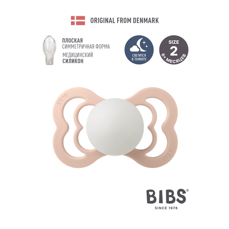 Соска-пустышка BIBS Ночная Supreme Silicone Blush Glow 6+ месяцев в ночной версии – колечко пустышки светится в темноте до 8 часов!