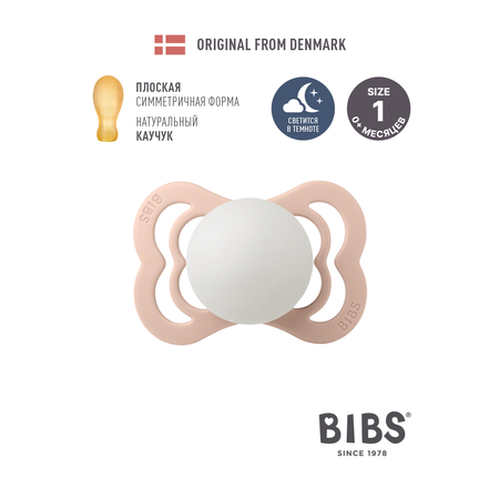 Соска-пустышка BIBS Ночная Supreme Latex Blush Glow 0+ месяцев