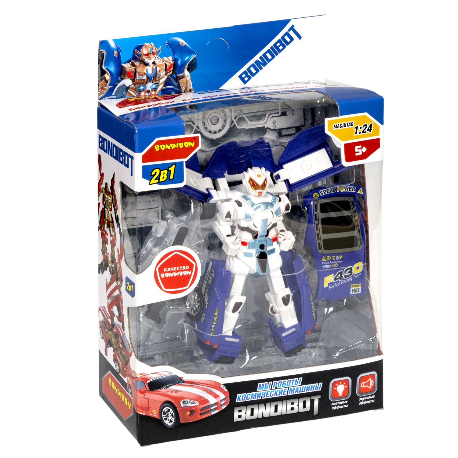 Трансформер 2в1 робот- машина синяя серии BONDIBOT от Bondibon – идеальный игровой комплект для мальчиков увлеченных темой автоботов, механики и техники. Это не просто игрушечный кар бот, а целый мир приключений, обучения и веселого развлечения, который откроет новые горизонты для вашего ребенка. Робот - это отличный подарок для мальчика на день рождения, 23 февраля или Новый год. Яркая упаковка делает игрушку оригинальным и полезным новогодним сюрпризом сыну, брату, другу или племяннику. А также это готовый подарочный вариант на выпускной в детский сад или в школу. Мини - трансформер сочетает в себе образ боевого 3д робота и маневренность легкового автомобиля. Благодаря простой и продуманной механике малыш с легкостью трансформирует машинку в фигурку робота и обратно — просто поворачивай, складывай и соединяй детали транспорта. Дети могут играть как с отдельной моделью, так и использовать ее в составе коллекции, создавая собственные игровые сценарии и сюжеты. Сборка и разборка трансформера способствуют развитию мелкой моторики, воображения и логического мышления. Предназначен детям от 5 лет. В наборе : робот-машина. Дополнительно Вам понадобятся 3 батарейки типа LR44 для воспроизведения световых и звуковых эффектов. Компактный размер робокара идеально подходит для игры в дороге, в самолете или в детском садике. Набор также подойдет для коллекционеров маленьких фигурок и любителей интересных игрушек для мальчиков. Детский конструктор помогает развивать навыки моделирования, силу рук и координацию движений. Он станет полезной штучкой для развития и увлекательного досуга. Игрушка изготовлена из качественного пластика, что делает ее безопасной и долговечной. Бренд Бондибон известен своими качественными и безопасными игрушками, которые популярны среди родителей и детей. Собери всю коллекцию крутых героев трансформеров Бондибот !