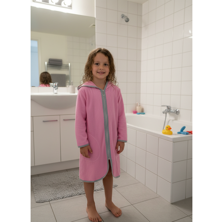 Халат для девочки. Розовый халат. Халат на замке. Халат с капюшоном. Состав: 100% хлопок.