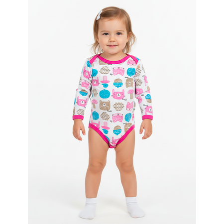 Боди для девочки. Боди для новорожденных, из 100% хлопка, приятного и гладкого на ощупь, благодаря чему кожа ребенка "дышит" и не раздражается, а прочная ткань сохраняет форму после множества стирок. Ткань интерлок. Модель выполнена с длинными рукавами. Идеально подойдет для ежедневного гардероба. Ползунки свободного кроя, не сковывают движения и подходят для ношения подгузника. Они практичны в использовании. Подойдут на повседневную носку, для прогулок и как домашняя одежда для малыша. Можно сочетать с колготками, юбкой, платьем, костюмом. Футболка, ползунки и комбинезон тоже подходят под боди. Идеально в демисезон, зимний период, весну, осень, лето. Сделано в России.