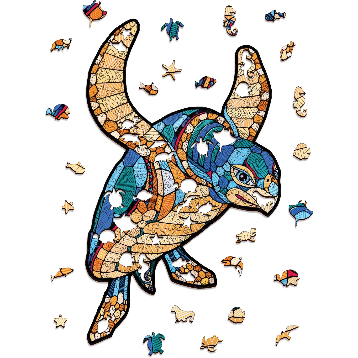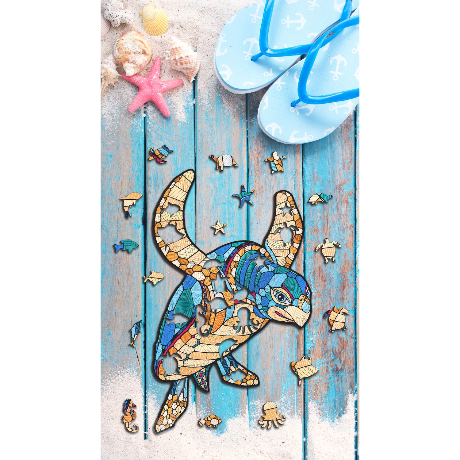 Деревянный пазл для детей и взрослых, фигурный пазл с уникальными деталями Eco Wood Art "Морская Черепаха" размера L - это настоящая головоломка, ваша ловкость может пригодиться в сборке. Пазл изготовлен по оригинальной иллюстрации знаменитого художника Андреаса Прайса.