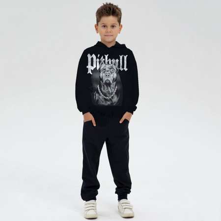 Костюм спортивный для мальчика из футера 2-х нитки без начеса! В комплект входит толстовка - худи оверсайз с капюшоном и брюки. Полотно состоит из хлопка с добавлением полиэстера, что делает его стабильным в использование и прочным к многократным стиркам. Благодаря конструкции костюма, обеспечивается закрытие поясницы и свобода движений. Костюм для мальчика без начеса отлично подходит для прогулок и занятия спортом. Сезон костюма круглогодичный. Сделано в России.