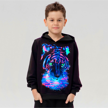 СВЕТЯЩИЙСЯ Спортивный костюм для мальчика футер Без начёса! Худи с капюшоном из ткани футер 2-х нитка, очень мягкого качества, очень хорошо подойдет для вашего ребенка. Картинка выполнена качественными красками которые не ощущаются на ощупь. Картинка Светится в темноте и ультрафиолете, для того что бы увидеть максимально яркое свечение достаточно зарядить картинку при дневном свете либо под лампой. С яркими и сочными принтами ваш ребенок всегда будет во внимании и доволен. Данный костюм идеально подходит как для прогулок в городе и занятий спортом : физкультурой , бегом. Костюм состоит из худи и брюк джоггеров которые давно явлюются хитом и трендом. Сезон костюма круглогодичный: идеально подходит на весну лето осень и зиму.