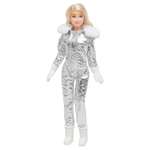 - Кукла одета в зимний комбинезон с капюшоном.