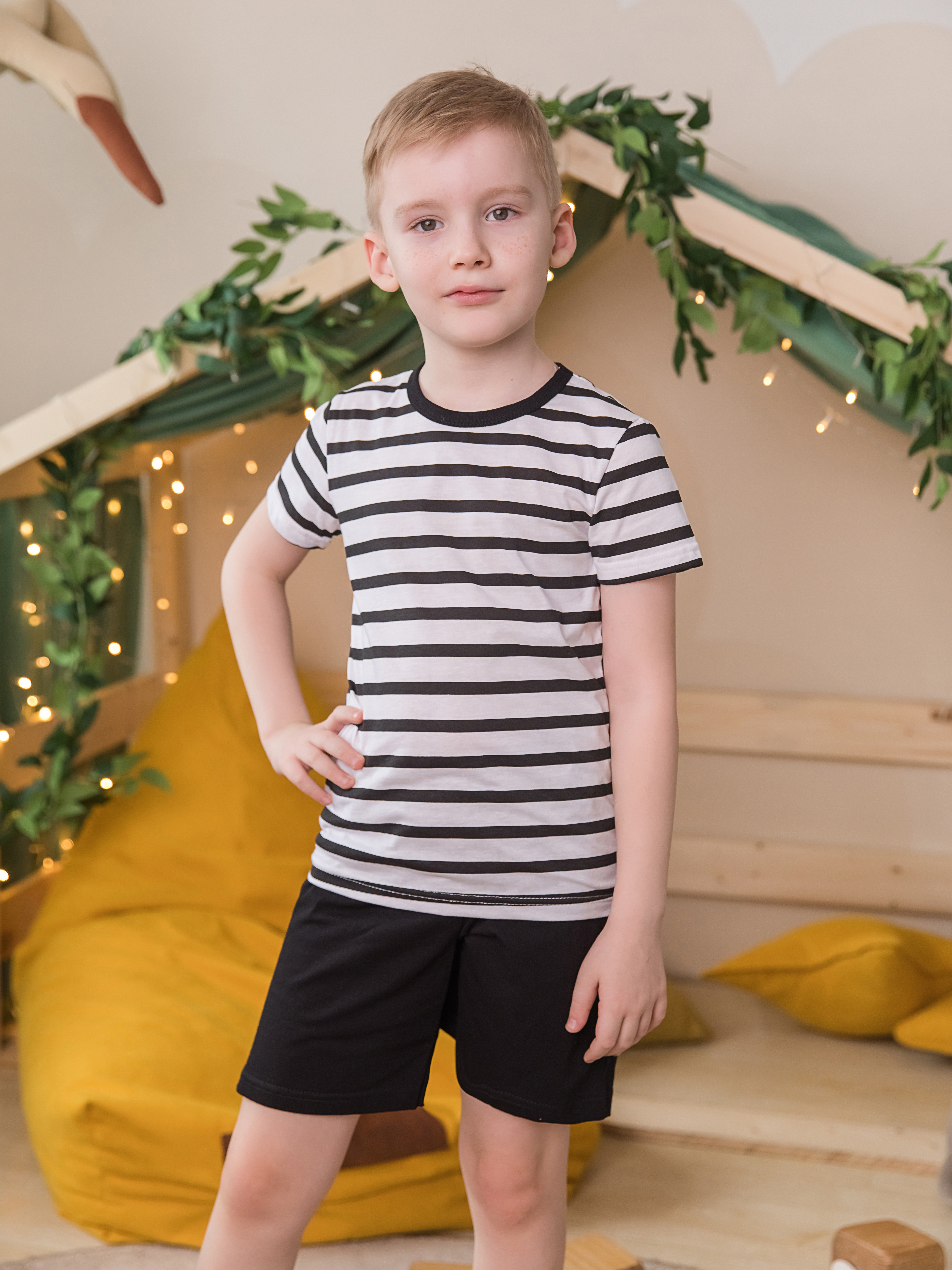Футболка для мальчика и для девочки в полоску черная белая - это всегда оптимальный вариант одежды в гардеробе ребенка на все времена года. Трендовый дизайн легко сочетается с любыми вещами.Подходящая вещь для маленького героя - детская футболкуадля мальчика и девочки. Она станет отличным дополнением к стилю и приятным сюрпризом для него. Футболка выполнена из высококачественного хлопка, поэтому она плотная и прочная. Такая одежда прослужит вашему малышу надолго, и даже на занятиях физкультуры маленькому герою будет удобно в школе.