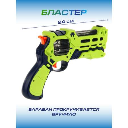 В комплекте игрушечный пистолет, метатель снарядов, 4 диска.