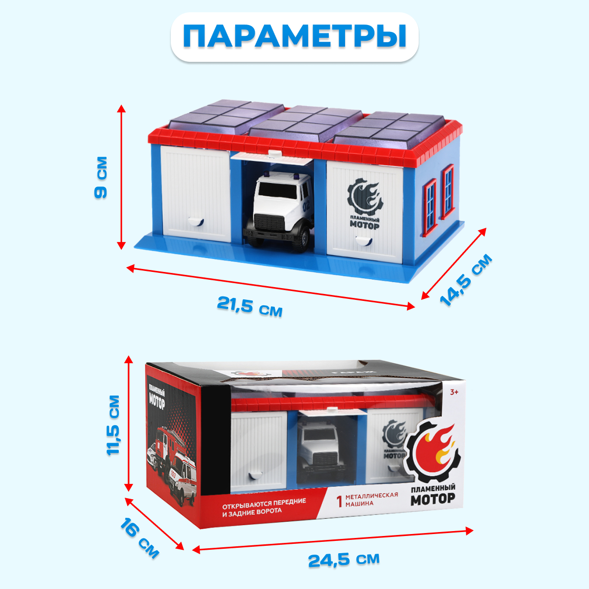 Игровая детская автопарковка станет отличным подарком мальчику и девочке на день рождения, 23 февраля или Новый год. В набор входит игрушечная металлическая машинка — полицейский фургон с высоким уровнем детализации. Благодаря тщательно продуманным элементам игрушки выглядят очень реалистично и увлекут детей в любом возрасте в интересные игры с автомобилями. Передние и задние ворота автопаркинга открываются и закрываются вручную, что добавляет интерактивности игровому процессу.