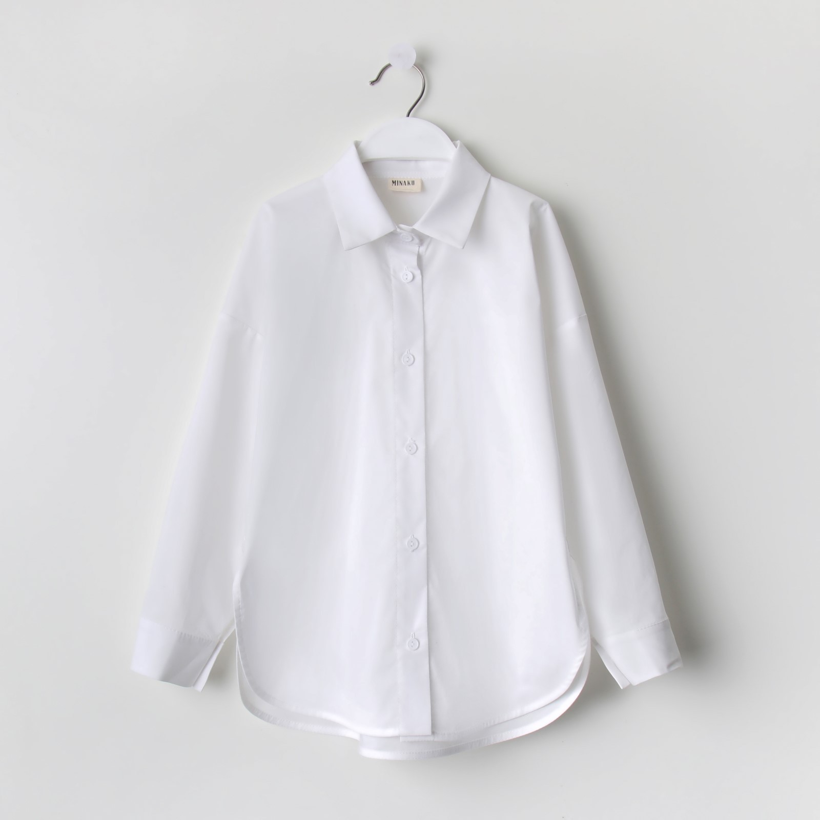 Рубашка для девочки от бренда MINAKU. Универсальная базовая школьная блузка - незаменимая вещь в гардеробе каждой девочки. В ней ребенок будет чувствовать настоящую свободу движения где ничего не сковывает сплошная свобода и комфорт. Рекомендации по уходу за детской одеждой: деликатная стирка при 30 С не отбеливать.