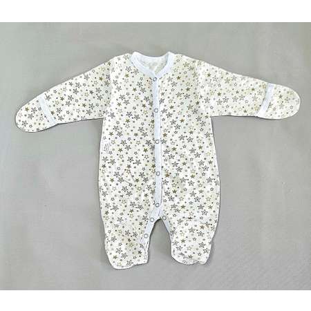 Комбинезон для новорожденных из легкого трикотажа-кулирная гладь , швы выполнены наружу, для нежной кожи малыша. Застежка по центру и вдоль ножек, кнопки. Длинный рукав с антицарапками. Комбинезончик 50 размера подходит самым маленьким,недоношенным малышам.