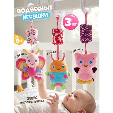 Набор мягких подвесных погремушек Zeimas 3 шт Бабочка, Сова, Жук