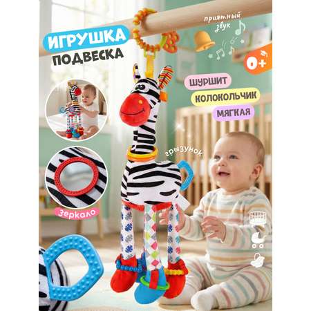 Игрушка-подвеска Zeimas Зебра с прорезывателем и мягким зеркалом погремушка развивающая