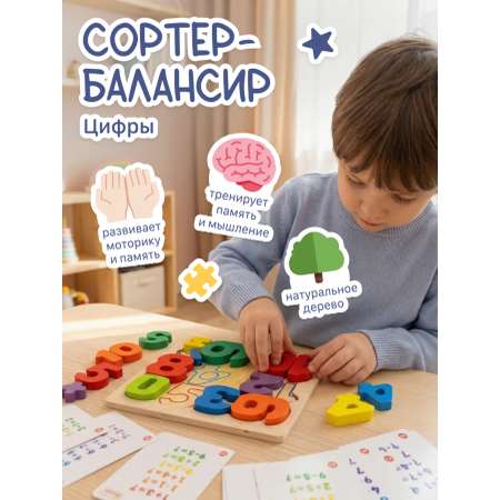 Балансир-башня «Цифры» это уникальная развивающая игрушка, которая сочетает в себе сортер, балансир и пирамидку.