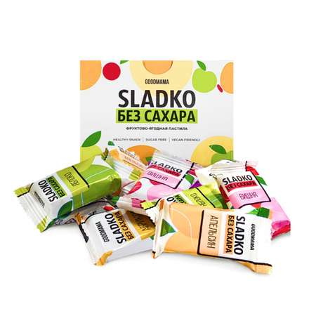 Фруктовая пастила SLADKO без сахара - натуральная пастила БЕЗ САХАРА, БЕЗ ГМО и БЕЗ КРАСИТЕЛЕЙ. Пастила рекомендована для питания - здоровое, правильное, диетическое, спортивное, детское. Полезная сладость из яблочного пюре и сока содержит калий магний, пектин. Здоровый перекус - суперфуд для диабетиков, сладкие вкусняшки для похудения женщин, для детокс диеты и в пост. Вкусные жевательные постные полезные диетические сухофрукты заменят вам сладости и снеки. Это отличный сладкий подарок для детей, жене, матери, на годовщину, в школу ребенку, любой праздник, для тех, кто поддерживает пп питание, на спортпит. Это веганский продукт без глютена. Яблочная смоква со вкусом микс ассорти - повод попить чай. Натуральный протеиновый сушеный десерт не заменит свежие фрукты, но содержит витамины для детей (в тч vitamin c ) и отлично подойдут в качестве органик батончики низкокалорийные. Пастила GOODMAMA - это полезно и вкусно! Полезная еда для всех.