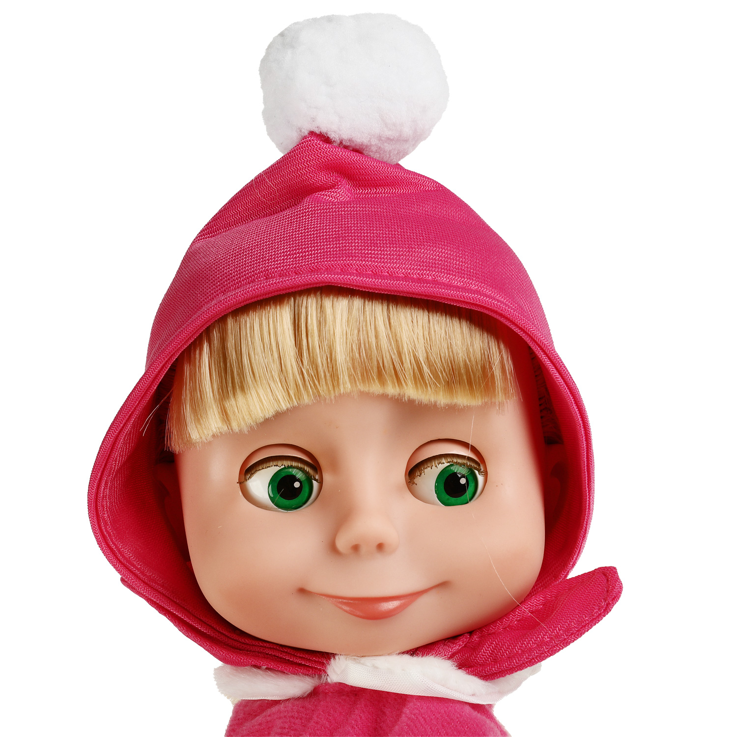 Маша одета в розовое пальтишко и тёплую косынку с меховой оторочкой. Одежда и аксессуары легко снимаются и надеваются. У куклы детально проработанное лицо и выразительные глаза с длинными ресницами. Милая кукла, выглядящая в точности как героиня популярного мультсериала, непременно вызовет у малышки самые трепетные чувства.
