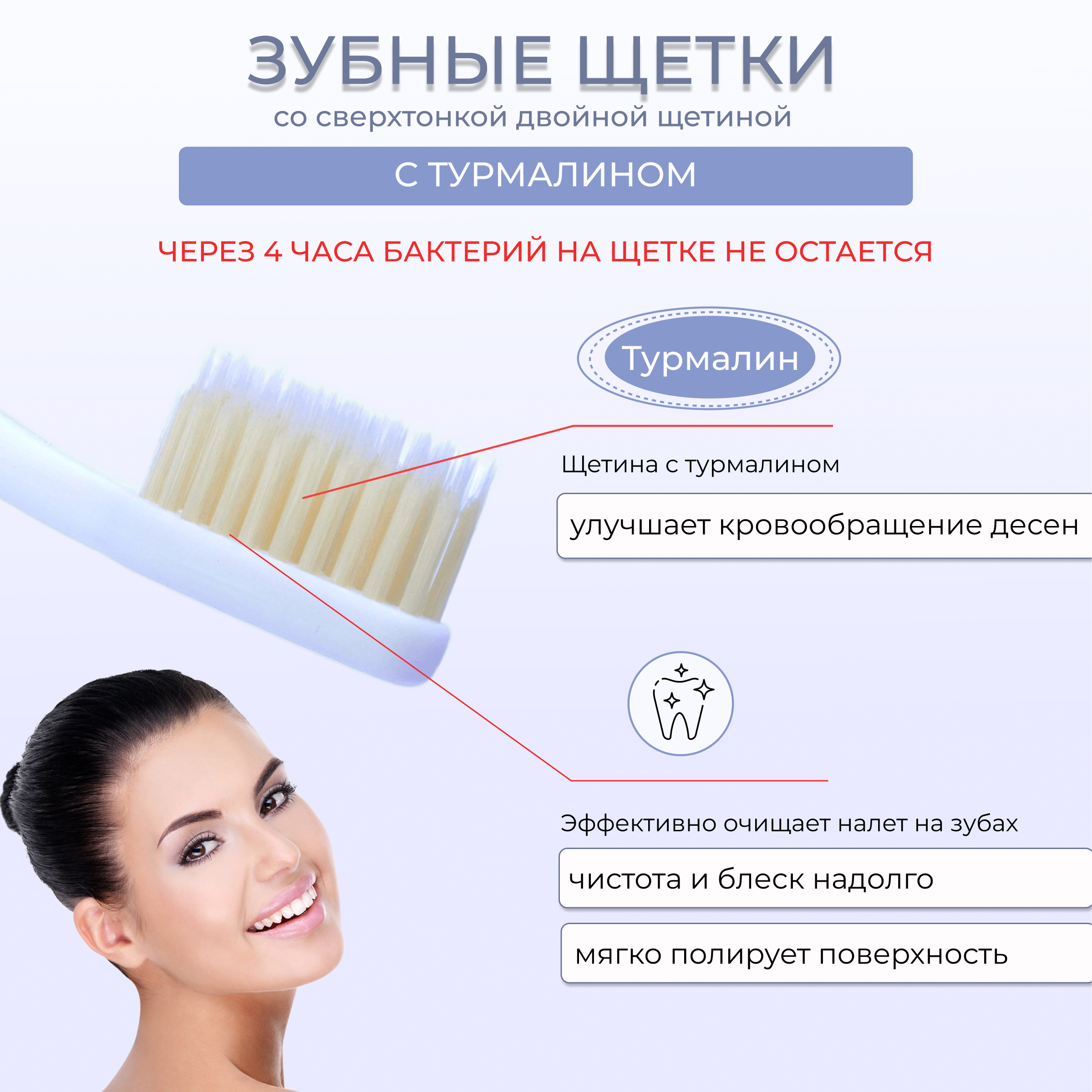 Набор зубных щеток DENTAL CARE cо сверхтонкой двойной средней жесткости и мягкой щетиной и изогнутой ручкой Турмалин 4шт