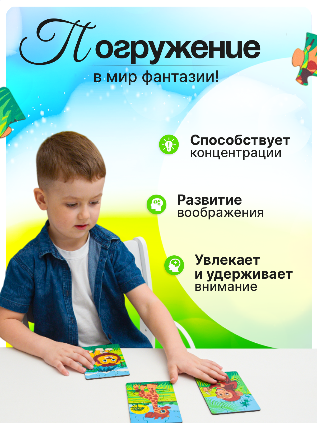Пазлы удобно хранить в компактной коробочке и легко носить с собой. Это отличный подарок для всех случаев – будь то День защиты детей, дни рождения или просто желание подарить радость. Создайте увлекательный мир для своего малыша с набором "Пазлы с животными" и дайте ему возможность учиться и развиваться в игре!